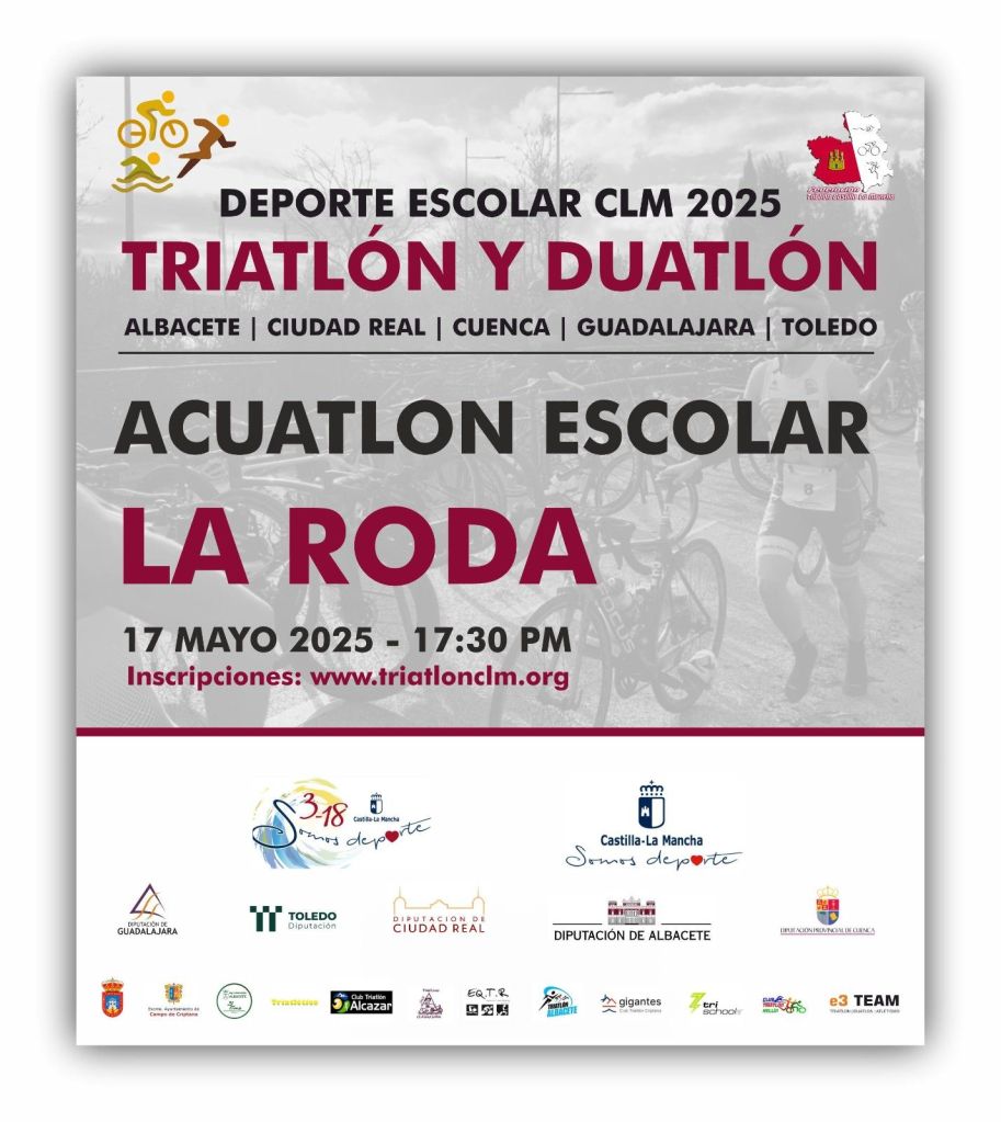 ¡En menos de 24 horas arranca el Acuatlón Escolar de La Roda! ¿Te lo vas a perder? Ven a partir de las 17:30 a las cercanías de la piscina cubierta David Castro Fajardo.